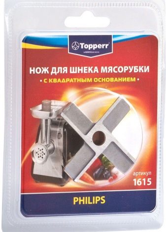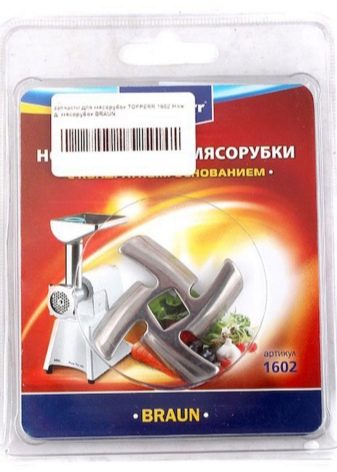 Good compatibility with knives from the meat grinder Braun, Philips. The cutting parts of these devices have a long service life, but if they become dull, you will have to spend a significant amount from the family budget, since the elements are expensive for the price.