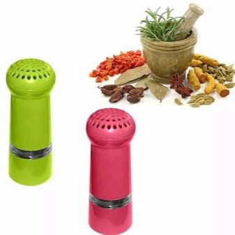 - Disposable They are a non-separable construction and are used exactly until seasoning ends in them. Such products are sold with spices already poured inside, replenishment of which is not possible. In height, they rarely exceed 10 cm and, with intensive use, are emptied rather quickly.