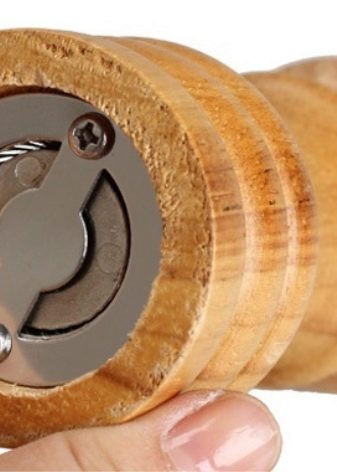 More modern models of mills are equipped with an adjustment function, which is carried out by tightening or loosening the screw on the product cover and allows you to independently select the size of the milled particles. The next detail of the design is the handle, which not only transfers torque to the millstones and makes them rotate, but is sometimes the main decorative element of the mill.