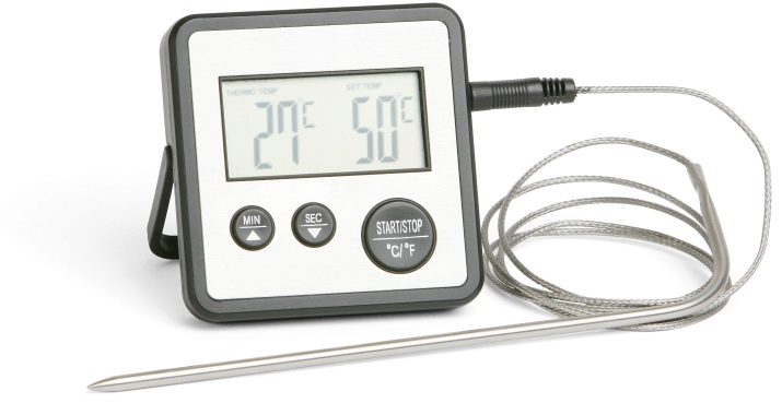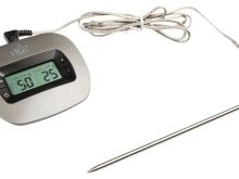 A thermometer with a probe (probe) is a device used to monitor the temperature indicators of food ingredients. He is an excellent assistant if, when cooking, you must strictly follow all the rules in order to get the desired result. A long metal probe makes it possible to find out the readiness of the dish in the middle, and not just on its outer side. Most of all, this is important for large pieces of meat, desserts or fish.