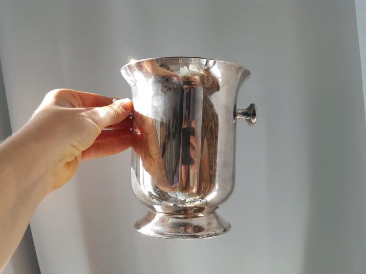For those who love luxury in everything, we recommend paying attention to silverware. Such buckets are made of high quality metal. The product can be made in the style of an ordinary bucket or vase. Moreover, if you intend to present such an accessory as a gift, then engraving can be easily made on such a product.