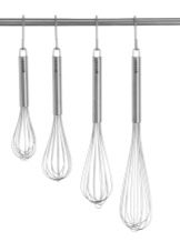 The main purpose of the whisk is to mix several ingredients. In this task, it is important for the cook to “arm” with a mixer and a blender, however, this technique will not be convenient for working with small portions and small volumes of mixed products. For certain manipulations in the kitchen, you can choose a spiral, confectionery, small or large, metal or plastic whisk. Choosing the right option means providing yourself with a comfortable and enjoyable cooking.