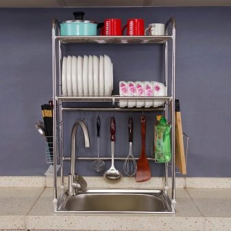 In addition, modern desktop drying devices are presented not only in a single-tier version. Are in great demand two-tier and three-tier structures, adjustable in height. They also have additional cutlery compartments.