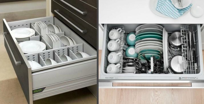 Modern models of built-in dryers can have a complex structure, with many additional compartments for various utensils, namely for cutlery, glasses.