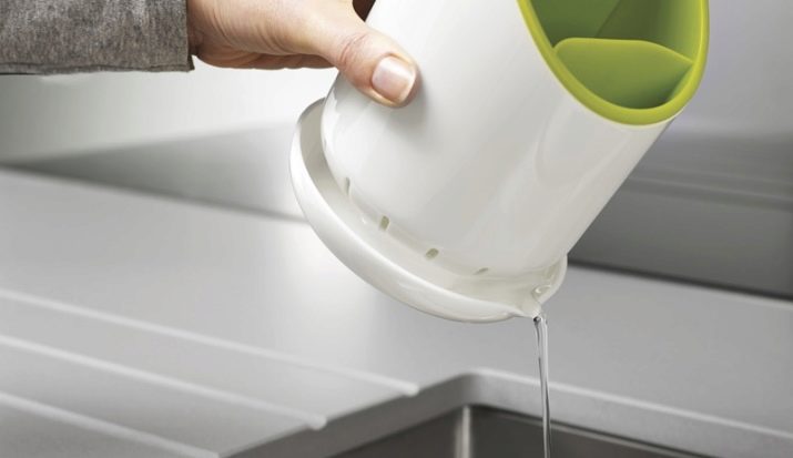 The dishes left on the dryer do not require the use of additional devices, the remaining water flows independently into special trays, which are easily cleaned of stagnant liquid.