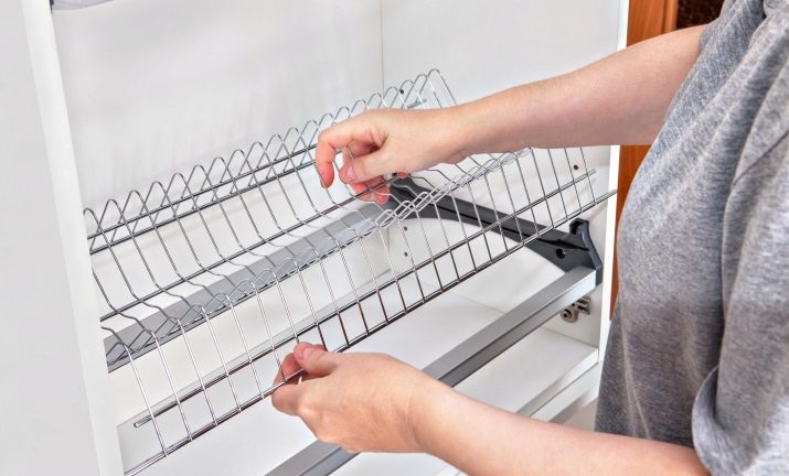 The hostess needs to independently decide on the option of convenient placement of the drying, so that during operation there will be no problems. This is especially true for the design of a kitchen set with many built-in objects and accessories.