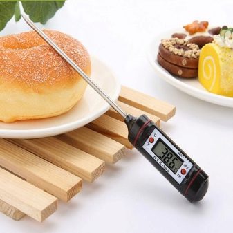 You can not be guided in choosing a food thermometer for the kitchen only by its simple device and reliable operation.Another circumstance is much more important - which dishes are mainly to be cooked at home. Fans of not only confectionery, but also a variety of dishes should purchase thermometers with a range of 40-200 degrees. Specialized meat probes show temperatures from 60 to 120 degrees Celsius. But these devices will also help determine the degree of warming up and readiness: