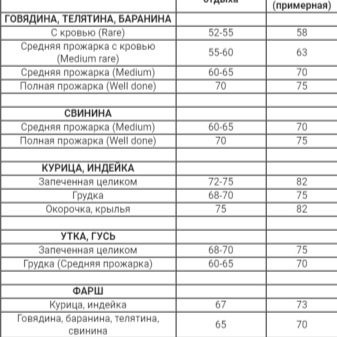 Complete thermometers need to be calibrated. To do this, they are immersed in melt or boiling water and the settings are set accordingly. Important: you should double-check the accuracy of the device readings at least 1 time in 30 days. If the device is equipped with an audible alarm, stop cooking immediately as soon as a characteristic signal is heard. It is useful to take into account the standard temperature table of ready meals: