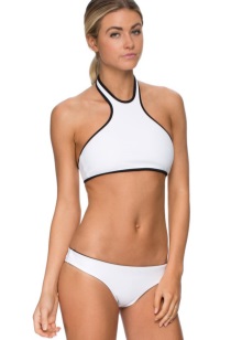 When sewing white bathing suits, special fabrics consisting of different types of fibers are used. The main requirement for it is strength, elasticity, hypoallergenicity and thermoregulation. Most often there are outfits made of lycra (it is part of almost all swimwear), polyester, polyamide, tactel and microfiber.