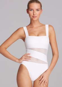 A white swimsuit, in spite of the fact that the catalogs present models for both curvy ladies and slim women, is fat. And therefore it suits a limited audience - tanned dark-skinned girls of a sports constitution, with narrow hips and a well-noticeable tan. Ladies with fair skin and even the slightest hint of excess weight in white are better not to put on or do it very carefully.