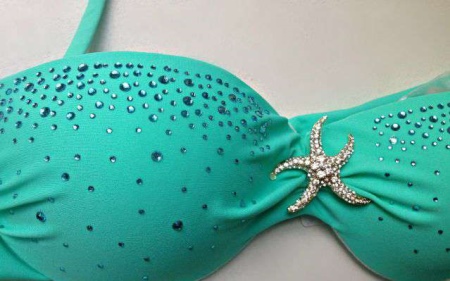 Rhinestones decorated models are very popular. The print is a placer or a specific pattern. Shiny stones will shimmer in the sun, attracting the attention of people around to the fashionista.