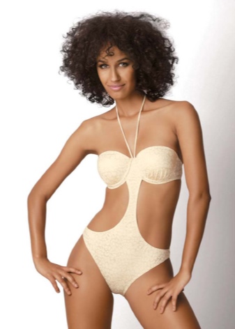 One-piece swimsuit is quite simple in style, because its characteristic feature is the closed abdomen. The upper part of this species, as a rule, has elastic cups that support the chest, and the back can be either fully open, with decorative fabric or metal jumpers, or more restrained, closed to the level of the shoulder blades.