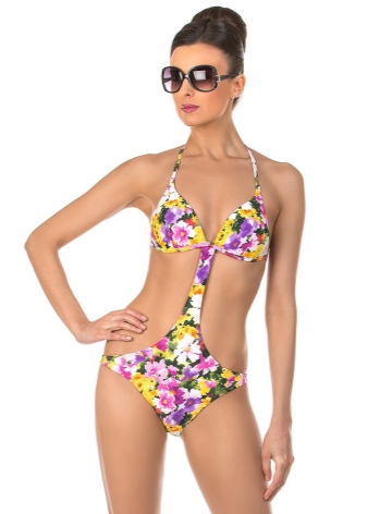 In the fresh collection, the brand presented a charming swimsuit - a dress on neat straps. The back of the product is partially open. The front part is decorated with a spectacular print that will attract admiring glances on the beach. Ties are placed on the sides of the leotard that can be tightened and made shorter or loose.