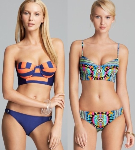 Products of fuchsia, blue, turquoise, yellow and red colors are very popular. Attractive look bustier with a variety of prints.