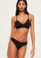 - Trikini - are united by a thin strip covering the navel, bodice and panties. One of the fashionable models that embody femininity and coquetry. It differs from the bikini in some restraint, but at the same time this style is no less attractive.