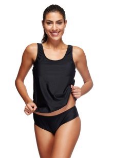 - Tankini - A great option for modest and disadvantaged women. Presented in the form of a top and panties. The top can be both with straps, and in the form of a bandeau. They look feminine and elegant.