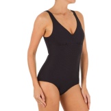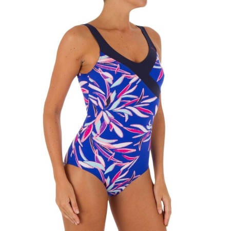 Laconic women's swimwear with wide straps looks very nice. Similar products from Decathlon will suit a lady with any breast size and physique. A closed product will hide many of the flaws of the figure.
