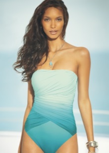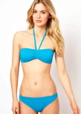 - Bando The top of such a swimsuit is represented by a strapless bodice.It is often decorated with ruffles, frills or fringe. This model is popular among owners of a small breast.
