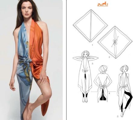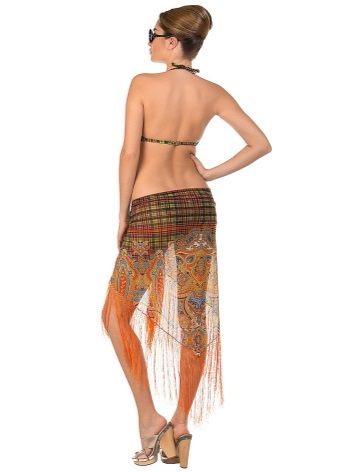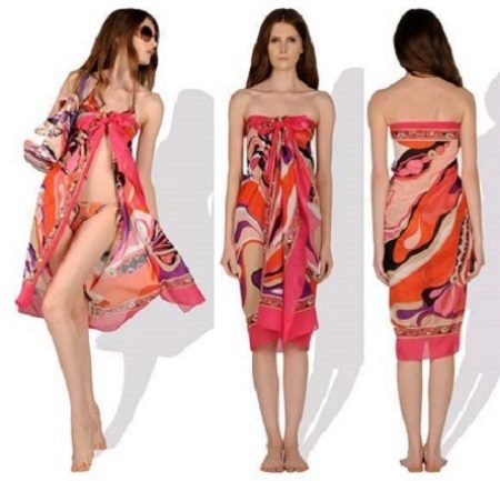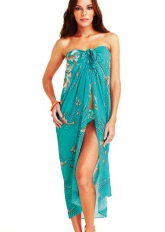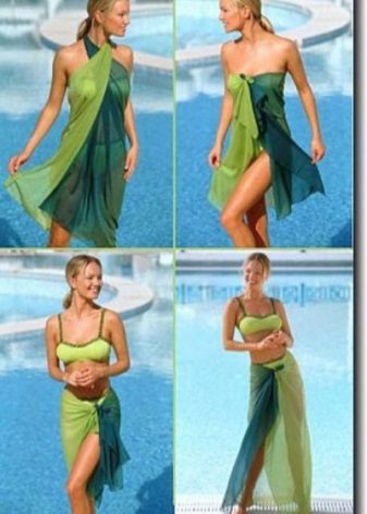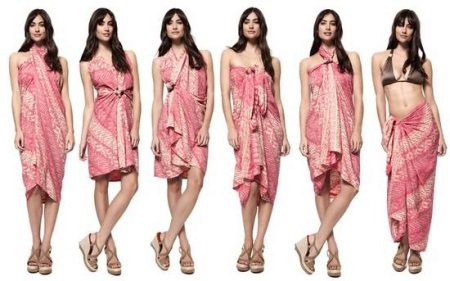 With the help of simple manipulations, a pareo can be turned into a dress, skirt, swimsuit and even shorts.