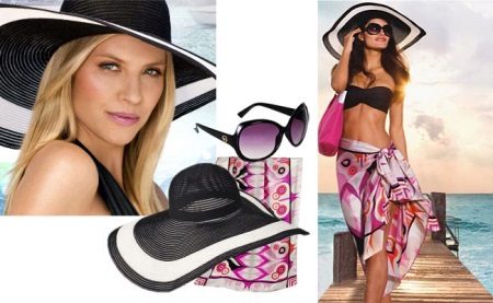 A bright summer bag, a wide-brimmed hat and sunglasses - all this combined with a light and stylish pareo represent a typical image of a girl on the beach.