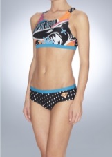 Sports split swimsuit thoughtfully designed. The top is firmly and tightly attached to the body, there are special rubber bands that do not move even with very intense workouts. On the edges, processing with a reliable seam for a comfortable fit of the product. They are made of soft elastic fabric that dries instantly in the air.