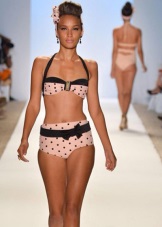 This season is very fashionable in swimsuits to have different top and bottom. So, for example, a large bright polka-dot bra and restrained striped swimming trunks will look very original and unexpected.