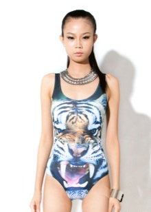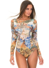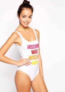 Colored letters and numbers on a swimsuit will not leave aside lovers of original phrases (like on T-shirts).