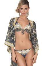 One of the most revealing models is Java. A bodice with a beautiful neckline neckline will only emphasize the volume of the chest. A vibrant floral print in tribal style will add daring and courage to you. High-waisted panties will hide your flaws. Designers added lightweight pajama pants and a tunic to this model.