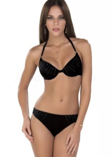 Models from the vibrant Melanie collection will be your favorite. The company offers a turquoise kit in several variations. These are inflated and classic panties, some of which are tied on the sides. You can choose the bodice that fits perfectly on your chest: with a hidden bone, an air corrector, a bando, double straps. Not spared and a one-piece swimsuit. In this series, you are offered a twisted, one-piece swimsuit with a bandeau cup that will support your chest.