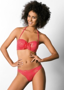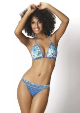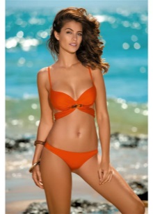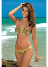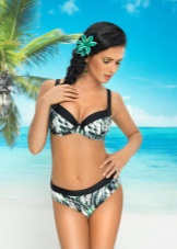Separate swimwear outwardly not inferior to one-piece models in elegance. Visually enlarging the chest and making the neckline more rounded and seductive will help molded cups with a push-up effect. Panties can have a low or medium waist. Many models are decorated with drapery and decorative pendants.