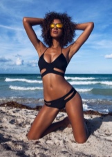 Bold owners of a slim figure will definitely appreciate this frank model. This swimsuit was developed by Japanese designers. The bandage product consists of several knitted strips that are combined with each other. Such a suit reveals all areas that are usually hidden in traditional swimsuits.