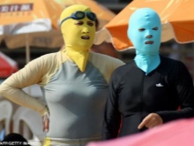 - To simplify the task, a face swimsuit was invented in China, which is a mask of elastic material that covers the entire face, neck and chest triangle.