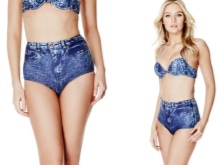 The famous American brand Guess decided to surprise the ladies and recently released the original denim swimsuit. Panties with such a pattern are more like short denim shorts. The lady in this interesting outfit will certainly attract attention on the beach!