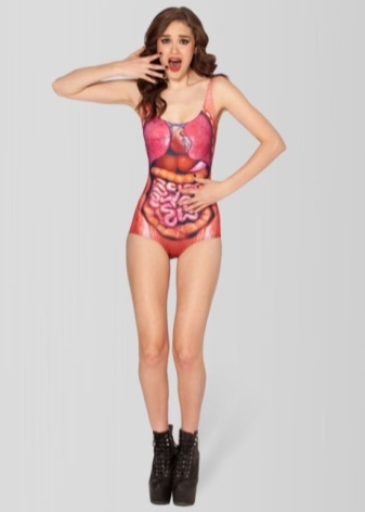 It is hard to imagine such a model, but the Black Milk Clothing brand still released it. This is a regular one-piece swimsuit with a print in the form of internal organs. In such an outfit, the lady looks as if she had been turned inside out. The Australian company produces no less bold products with a pattern in the form of muscles and skeleton.