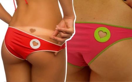 Many ladies have already appreciated charming swimwear with curly carved details. In these places, the skin tans in the shape of the pattern. The most popular are cute clippings in the form of hearts and flowers.