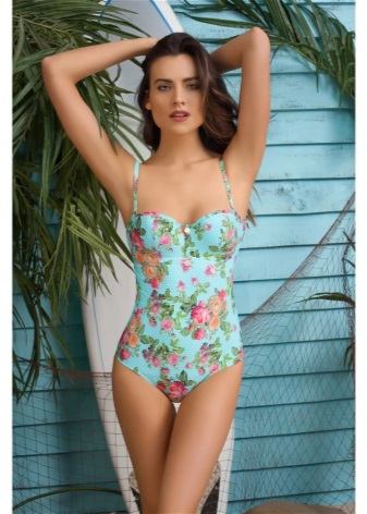 Try not to buy a too bright swimsuit, as it visually emphasizes all your shortcomings. If your eyes fell on a “bando” type swimsuit, then first of all, see if it suits your height.