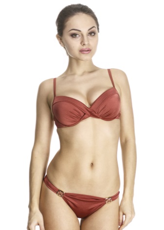 Swimwear for girls with a small bust is better to choose with a padded bodice. But, if you don’t like push-up models or tight cups, then opt for a bando. The model with a horizontal line on the bra will look perfect.