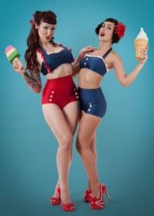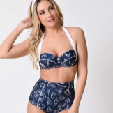 Products of this direction were previously the prerogative of celebrities and such famous movie stars as Marilyn Monroe, who with their help skillfully placed accents on their figure and hid its flaws under the corset base. Currently, such swimsuits resemble a body made of a more dense material, which is decorated with interesting details, which make the image even more seductive and piquant. Pin-up swimwear has become a favorite element of the wardrobe of the fashion model and singer Dita von Teese.