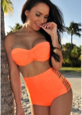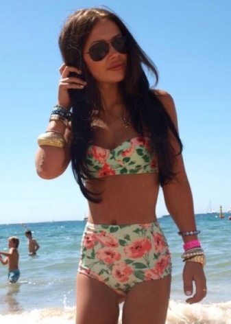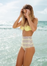 - High-waisted panties give the girl's graceful forms, effectively emphasizing her silhouette. Many sets are equipped with a special traction zone, which is able to smooth out small imperfections in the figure. In addition, this part of the swimsuit is able to emphasize the beauty of female legs and visually make its owner higher.