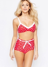 - Retro swimwear includes bandeau or rounded cup bras connected to each other in a feminine alliance. It is possible that there is a push-up, which effectively raises the chest and makes female forms more seductive.