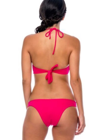 A fuchsia bandeau swimsuit is perfect for sunbathing on the beach or by the pool. The absence of strapless will help to get an even and beautiful tan on the shoulders, and low swimming trunks will help demonstrate all the advantages of your figure
