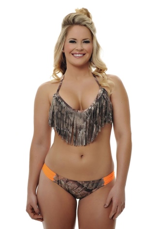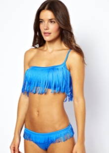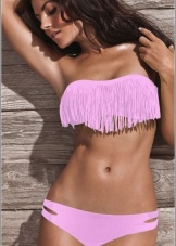 - Owners of magnificent forms should take a closer look at bandeau swimsuits, which are decorated with long fringe. Such a decor will help to hide the excess volume in the abdomen.