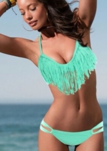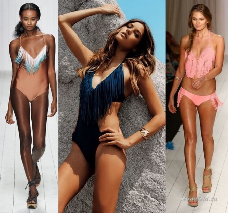 Fringe, as an element of decor, is used in almost all varieties of clothing and even in shoes. Not so long ago, fringe swimsuits began to appear. Their popularity is increasing every season and is not going to decline any more.