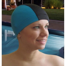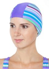 Textile hats are made of the same materials as bathing suits - lycra, polyester, polyamide and other synthetics. Their main function is to remove hair. The product does not press on the head, it is easily put on, it is not electrified. But unlike other models, such a cap lets water through. Therefore, this option is rather appropriate not for swimming, but for water aerobics. The textile model is not afraid of hairpins, because several holes will not change its properties. The price of such a product is low.