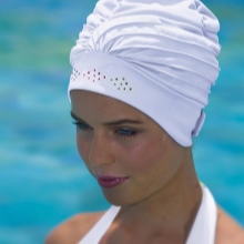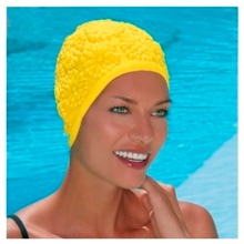 The most “ancient” look is latex caps, which have many shortcomings. They are very thin and fragile, can hardly be put on the head, which is why they are easily torn. In addition, they stick to the hair, spoil them, cause allergic reactions. This attribute is more or less suitable only for short-haired swimmers. After each use, the latex cap must be sprinkled with talcum powder, otherwise it will stick together. The only advantage of these products is their very low price. Usually they are offered in pools at a very low price. These hats have long superseded the latest technology.