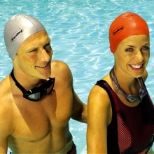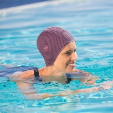 A slight lack of silicone hats - they too tightly fit your head, often have thickened edges to prevent water from entering the head. For some people, especially the elderly, this causes discomfort, sometimes turning into a headache. It is better for such swimmers to prefer fabric caps.