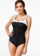 This model implies almost complete coverage of the back, varieties with zippers or a small drop-shaped neckline are allowed. This style is very fond of full female representatives, as it well hides the flaws of the figure. A swimsuit with a closed back drastically draws down the figure, adding harmony to its owner. These models are often made of fabric with a high lycra content (up to 30%) for better elasticity and a dragging effect.