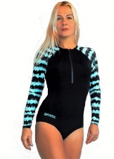 The cotton model with the addition of elastane is perfect for swimming in open water and is not designed for the pool at all, since the chlorine contained in the water will very quickly destroy the structure of the material.