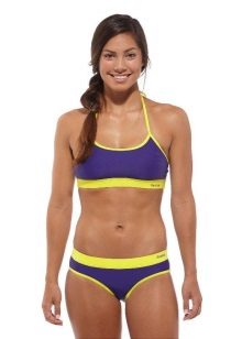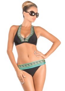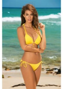 - Bikini. A hipster classic. One of the most popular models. They have a triangular shape. Suitable for miniature girls and owners of a magnificent figure.