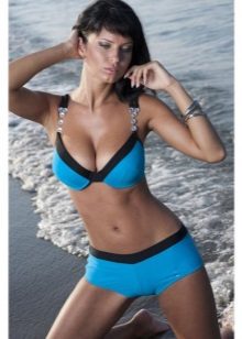 - Shorts. Recommended for girls with a rectangular figure. Swim shorts are very popular among girls. They entered our wardrobe at the beginning of the 20th century, then they were worn by the owners of an imperfect figure. Usually made of dense fabric with a dragging effect. Shorts have one big drawback - they are inconvenient to sunbathe, as the front and back are closed.